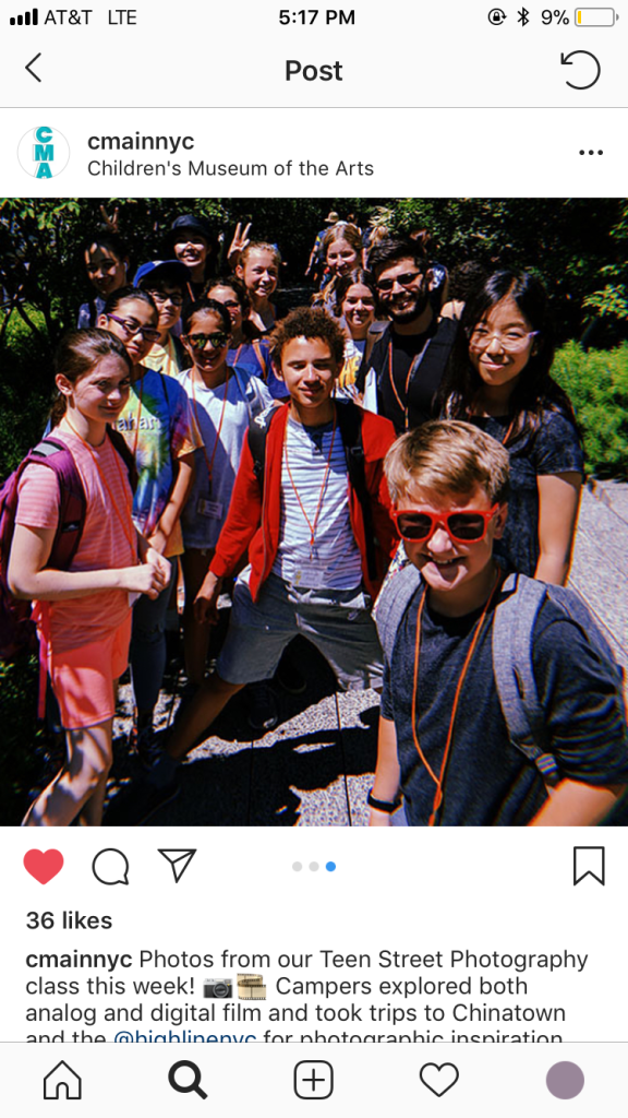 When working as an art colony counselor and teaching artist for Children’s Museum of the Arts in the City of New York, I counseled for children and teenagers ranging from age 5 to 15 who took the summer art colony lessons in 2018. I facilitated art-making in several art classes, including stop-motion animation, oil painting, digital photography, sculpture, and crafting. Furthermore, I designed and developed lesson plans for private art lessons. I also led creative pre- and post-class art activities in the Manhattan museum gallery as well as in the museum’s outpost on the Governor’s Island.