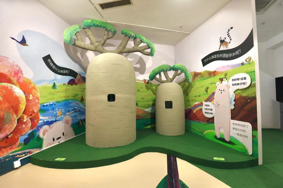I was responsible for writing the wall text (the storyline of the work & the knowledge tips for each exhibit item), designing the interaction experience (how children can interact with the exhibit items in a way that they can have fun while learning some knowledge about a certain tree), and setting the learning goals of the work Journey of Seeds with ANObear.