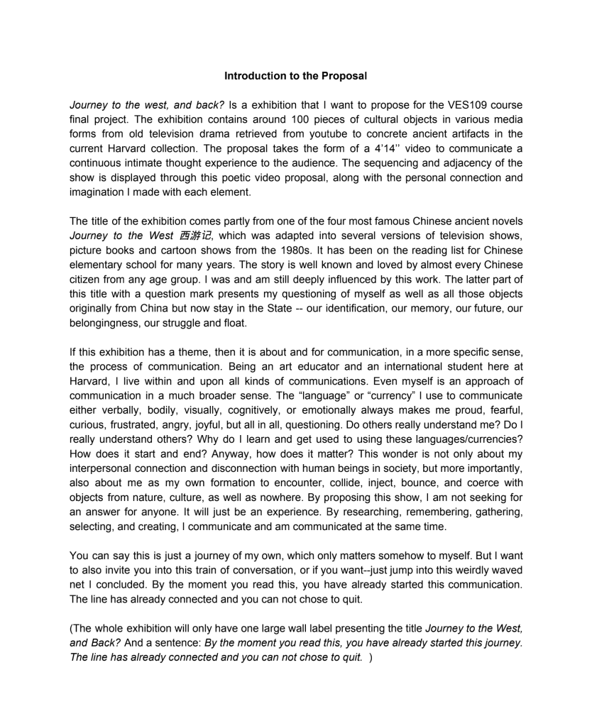 This was a proposal for a show, which was the part of the final project of a course (VES109 Artist-Curators and Collections) I took at Harvard in Spring 2019.